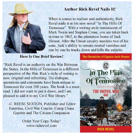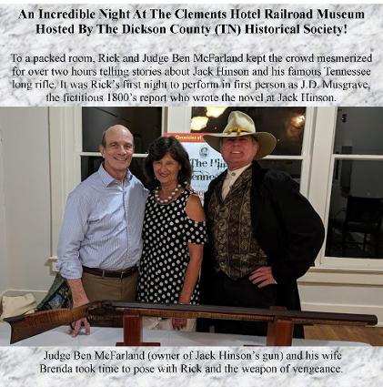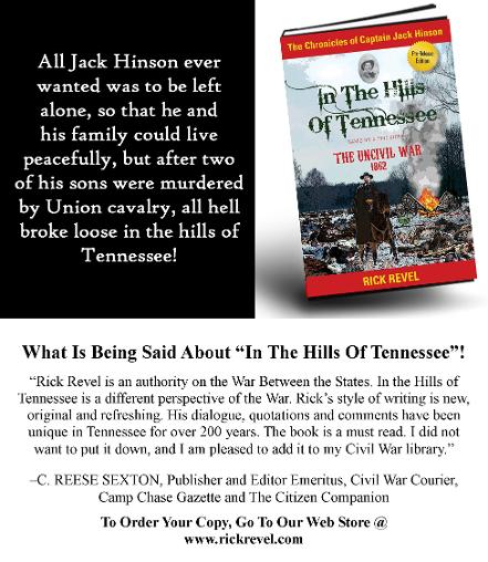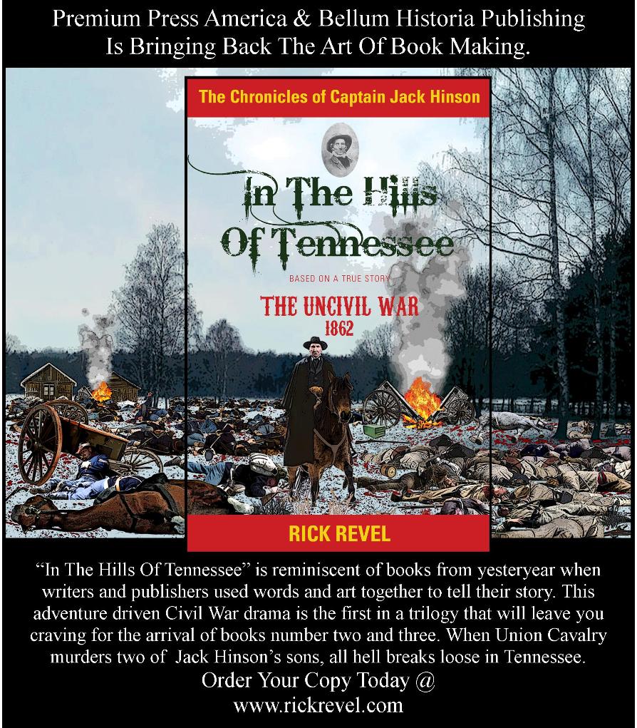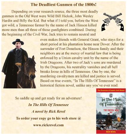 Finding inspiration from Tom's writings, Rick wrote a song titled "The Ballad Of Captain Jack" one evening and recorded the tune the very next day. Within a couple of months, he met Mr. McKenney and played him the song. Tom loved the song and invited Rick to be a part of his book tour. As their friendship grew, Tom challenged Rick to write a screenplay for his book. A month later a first draft was delivered, and second challenge was given. Liking Rick's script, Tom suggested that Rick turn the screenplay into a historic fiction novel. "In The Hills Of Tennessee", may contain some fictional dialogue, but the rest is historical content that will educate and entertain you at the same time.