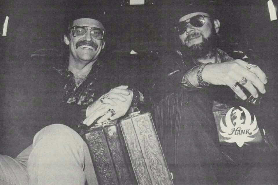 The picture directly above was included in the magazine, along with the story of how Merle met Hank, Sr. at one of the Louisianan Hayride shows in Shreveport, LA. At the age of fourteen, he unloaded Hank's guitar case out of his 1948 Packard and took it backstage of the Shreveport Municiple Memorial Auditorium where the Hayride was held. Later he would get to ride in the big touring car and become personal friends with the country crooner. While Merle read about himself in the publication, Rick sat patiently nearby as the office door opened and in walked Hank, Jr. With a huge smile, Merle looked at Bocephus and said, "I want you to meet Rick Revel. He has published this cool magazine and did a story about me and my Packard, and how I met your daddy." Politely, Hank reached out and shook Rick's hand and then proceeded to ask Merle a question, before he retreated from the room. Although Rick has never gotten to spend ample time with the superstar, he has crossed his path at least a half-dozen times more, which included sharing a stage at an NRA (National Rifle Association) event. The relationship with Merle Kilgore however went quite differently. Being entertained by Rick's passion for music and history, Merle broadened the conversation.